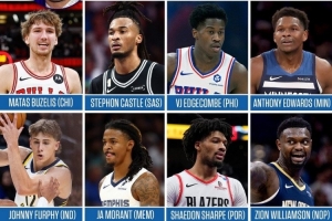 体育资讯11月12日讯 近日,三次获得扣篮大赛冠军的卡特选出了他的2026年扣篮大赛人选: 布泽利斯(公牛) 卡斯尔(马刺) VJ(76人) 华子(森林狼) 弗菲(步行者) 莫兰特(灰熊) 夏普(开拓者) 锡安(鹈鹕)