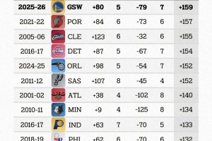 体育资讯11月12日讯 勇士客场102-126惨败雷霆。 勇士队客场战绩来到1胜6负,勇士仅在揭幕战客场战胜了湖人,随后遭遇一波客场6连败,而他们的主场战绩为5胜0负。 据统计,勇士本赛季至今12场比赛,主场净胜对手80分,客场净负79分,主客场净胜分差值达到159,创下了本世纪以来所有球队赛季前12场比赛的最悬殊纪录。 此前纪录由2021-22赛季的开拓者保持(157)。