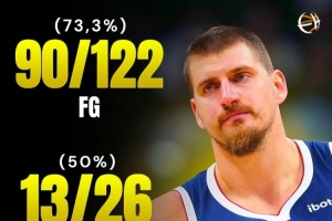 体育资讯11月13日讯 过去八场比赛,约基奇场均得到28.5分13.1篮板11.1助攻,命中率73.2%,三分命中率50%,罚球命中率85%。 直观一点看,总投篮122投90中,三分26中13,罚球40罚34中。