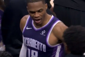 上场就有效!国王6.8秒进攻 威少快速空切人群中命中压哨挑篮!