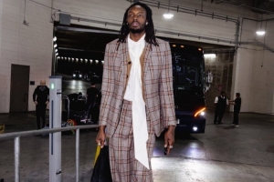 今日没小杨!开拓者亮相休斯敦 格兰特一身格纹套装时尚感拉满
