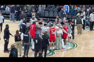 致敬兰尼-威尔肯斯!雄鹿主场球员赛后抱圈 杜兰特也凑上去