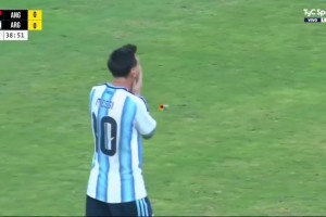 可惜了!阿尔马达倒三角传球,梅西跟进无人盯防射门打高!